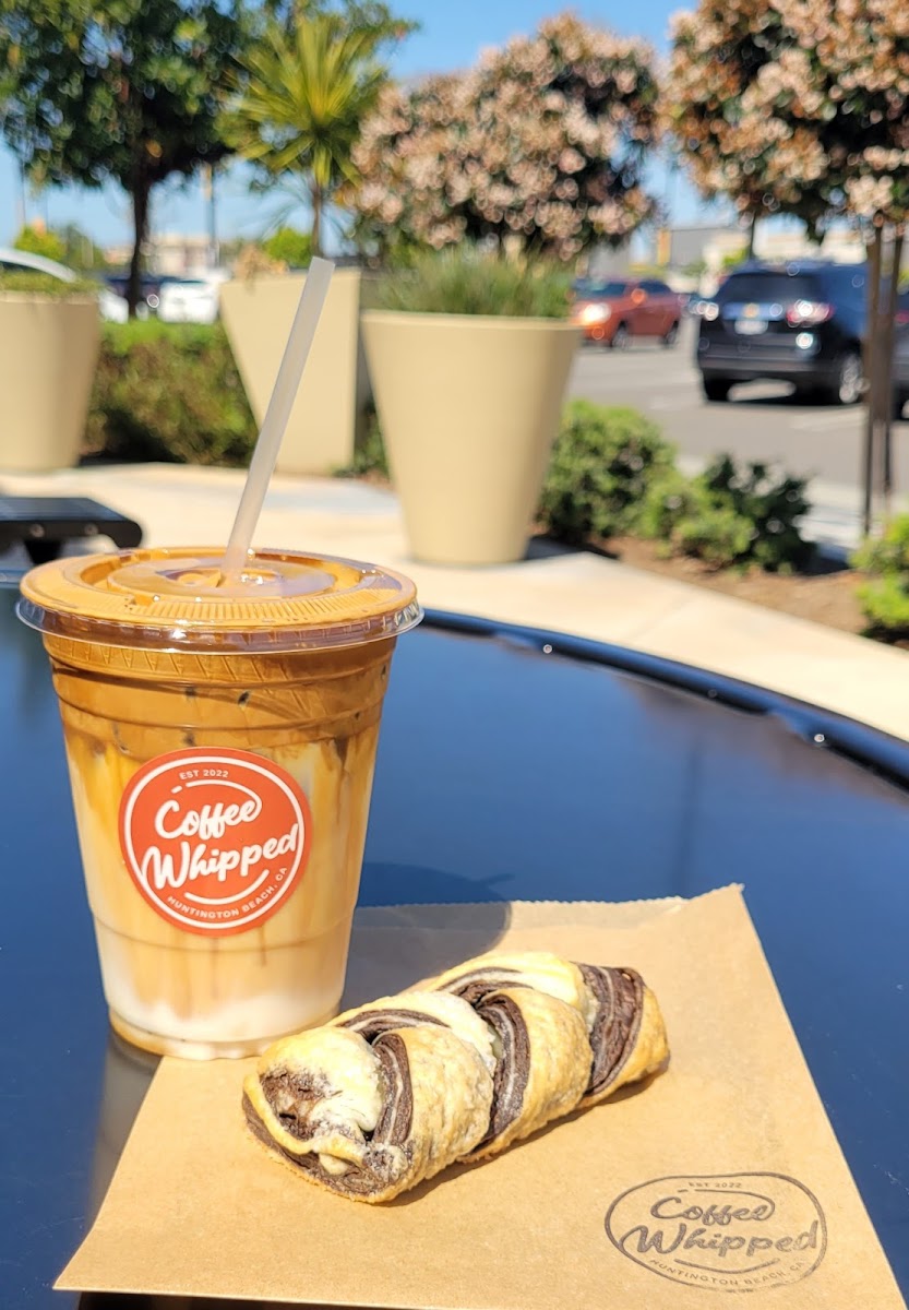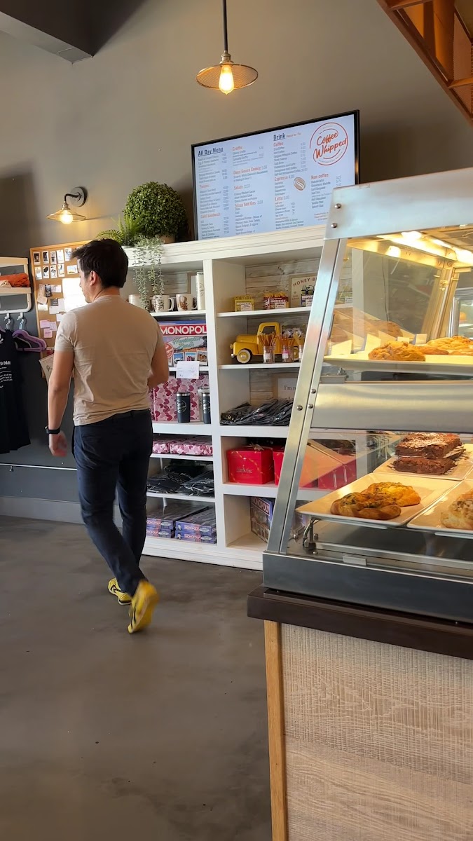 COFFEE WHIPPED is a cozy coffee shop nestled in the Goldenwest Plaza of Huntington Beach, sitting comfortably next to a Hobby Lobby with plenty of parking—making it an easy stop whether you’re running errands or catching up with friends. The space is relatively small with limited indoor seating, offering around seven tables, so it feels intimate without being cramped. Soft background music sets a mellow vibe that encourages conversation without overpowering the room, making it a nice spot for a relaxed morning or midday break.